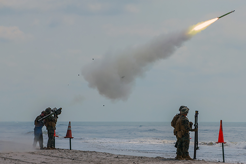 Onslow Beach, North Carolina 05.21.2019 - U.S. Marines fire a FIM-92 Stinger missile at their targets on at Onslow Beach, North Carolina, May 21, 2019. The live-fire training increases their capabilities in providing task organized, ground security force in defense of the Marine Air-Ground Task Force air sites, assets and installations when not engaged in air defense operations. The Marines are stinger gunners with 2nd Low Altitude Air Defense Battalion, Marine Air Control Group 28, 2nd Marine Aircraft Wing participated in this exercise. (U.S. Marine Corps photo by Lance Cpl. Elias E. Pimentel III)